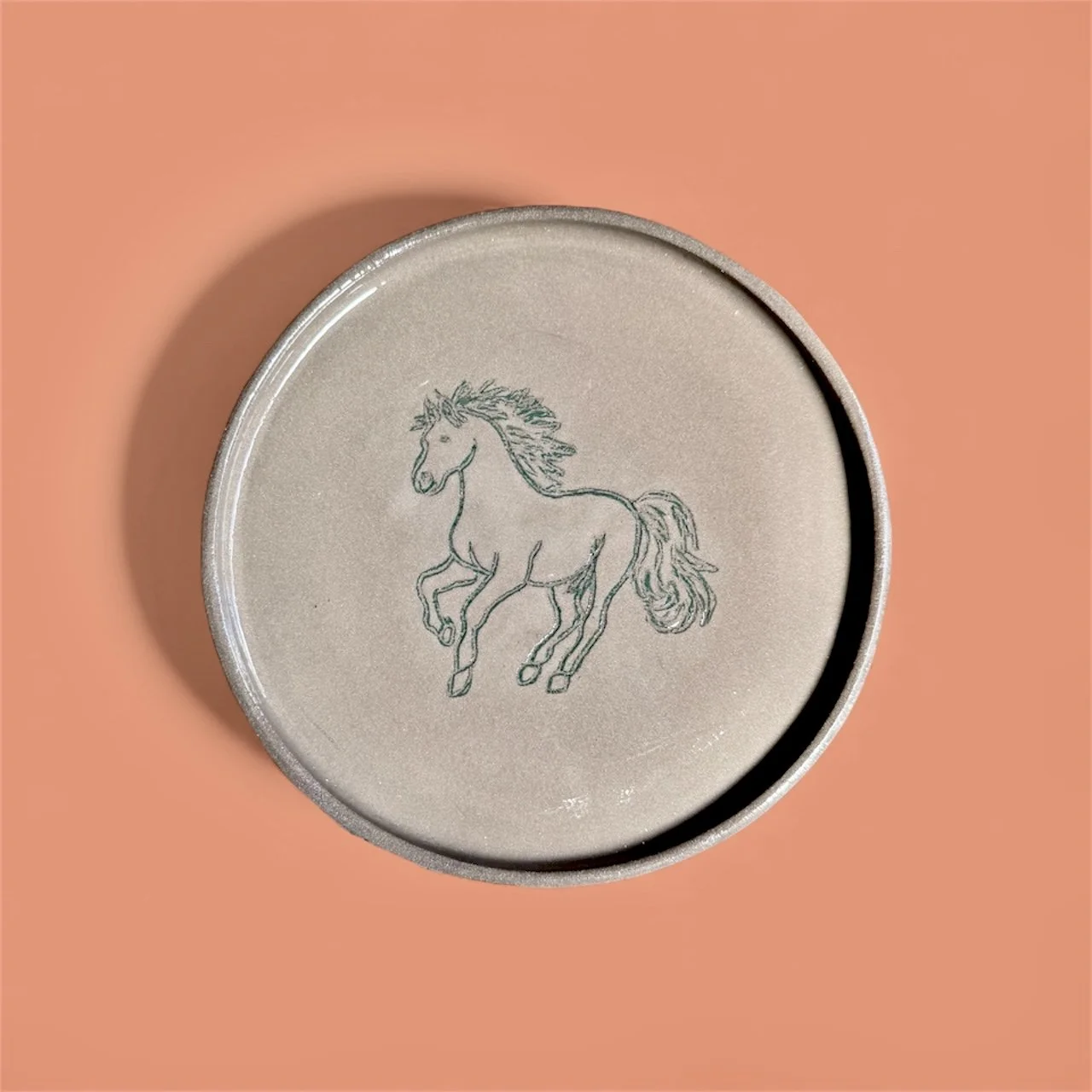 Shop › Year of the Horse Image 1 of 1 Year of the Horse £50.00 Limited Availability Hand made plate from smooth chocolate black clay. Hand carved and drawn horse illustration. Plate is roughly 25cm Purchase Added! Hand made plate from smooth chocolate black clay. Hand carved and drawn horse illustration. Plate is roughly 25cm Reviews Reviewer Name Review Date Star Rating Description Posted on Etsy Product Show More